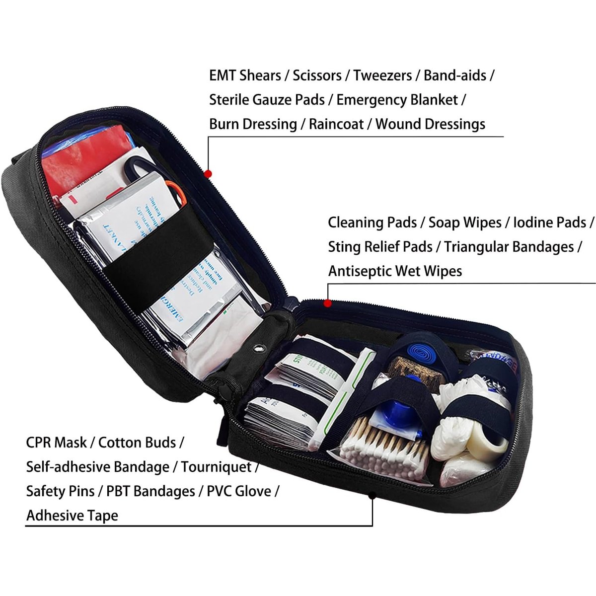 180 piece essential medical supplies for backcountry expeditions. Be Desmond Thomas Doss saving your family and friends in an emergency Molle system on the back can attach the kit to any MOLLE compatible gears and also a bicycle, motorcycle, backpack, belt, vehicle seat etc, easy to attach and unfasten Medical supplies are organized by inner pockets and elastic straps that make it easy to search supplies. Pouch and inner contents are water resistant. 2 way zipper with silent cord pulls is certified Support to take emergency treatment for burns, choking, SCA, minor cuts, severe wounds, fractures, insect bites, and hypothermia, making it a true lifesaver in critical situations Please attach the kit on a platform where you can get at the first time, make sure the kit is secured, that will make it easy to access medical supplies in an emergency Show more