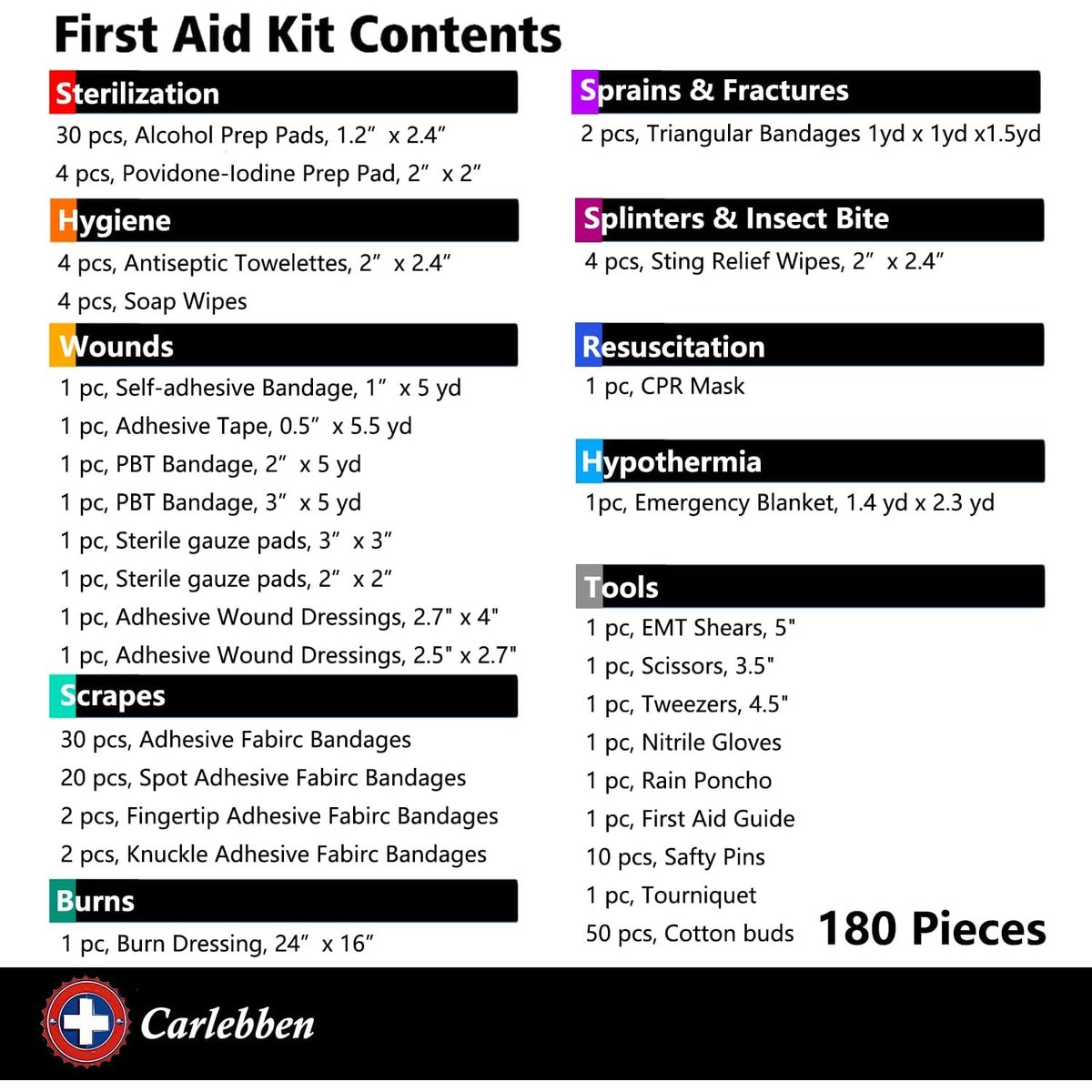 | Included Components | 180 PCS Medical Supplies |