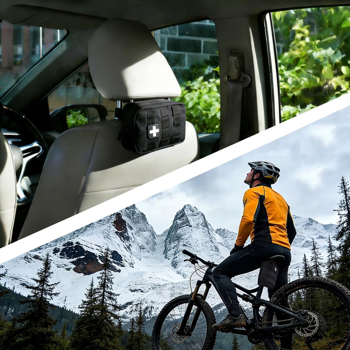 - Molle system on the back can attach the kit to any MOLLE compatible gears and also a bicycle, motorcycle, backpack, belt, vehicle seat etc, easy to attach and unfasten