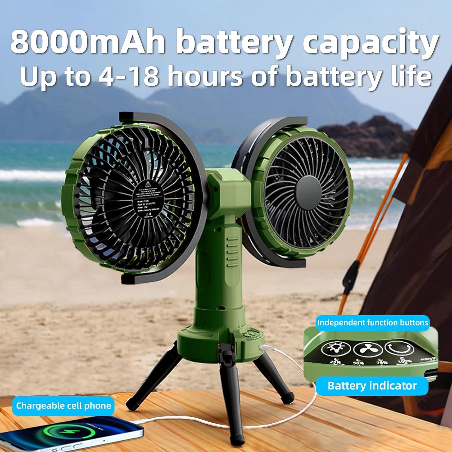 - 🔋 Massive Runtime: Powered by a high-capacity 8000mAh rechargeable battery that lasts through the night and doubles as a phone charger.