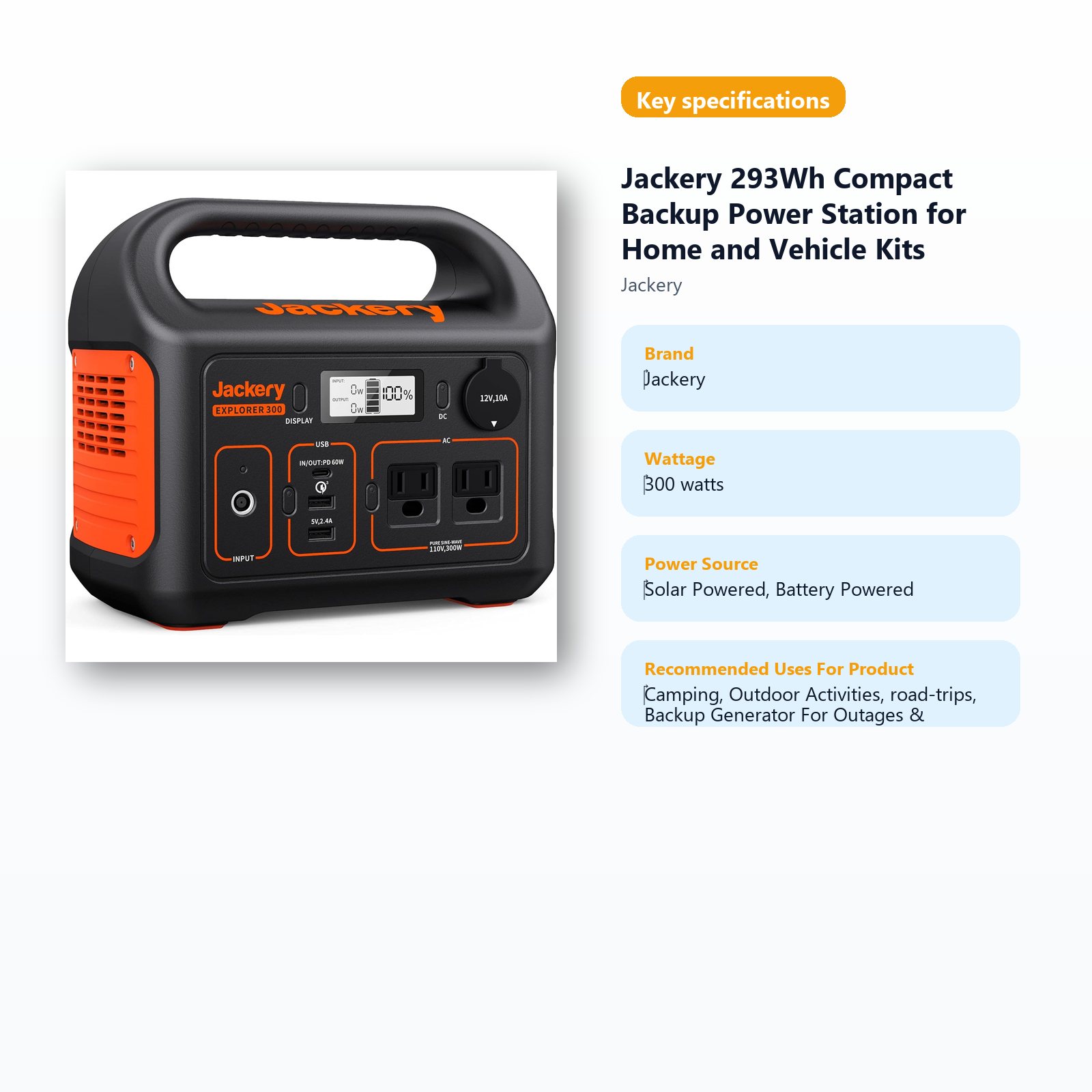 Jackery 293Wh Compact Backup Power Station for Home and Vehicle Kits
