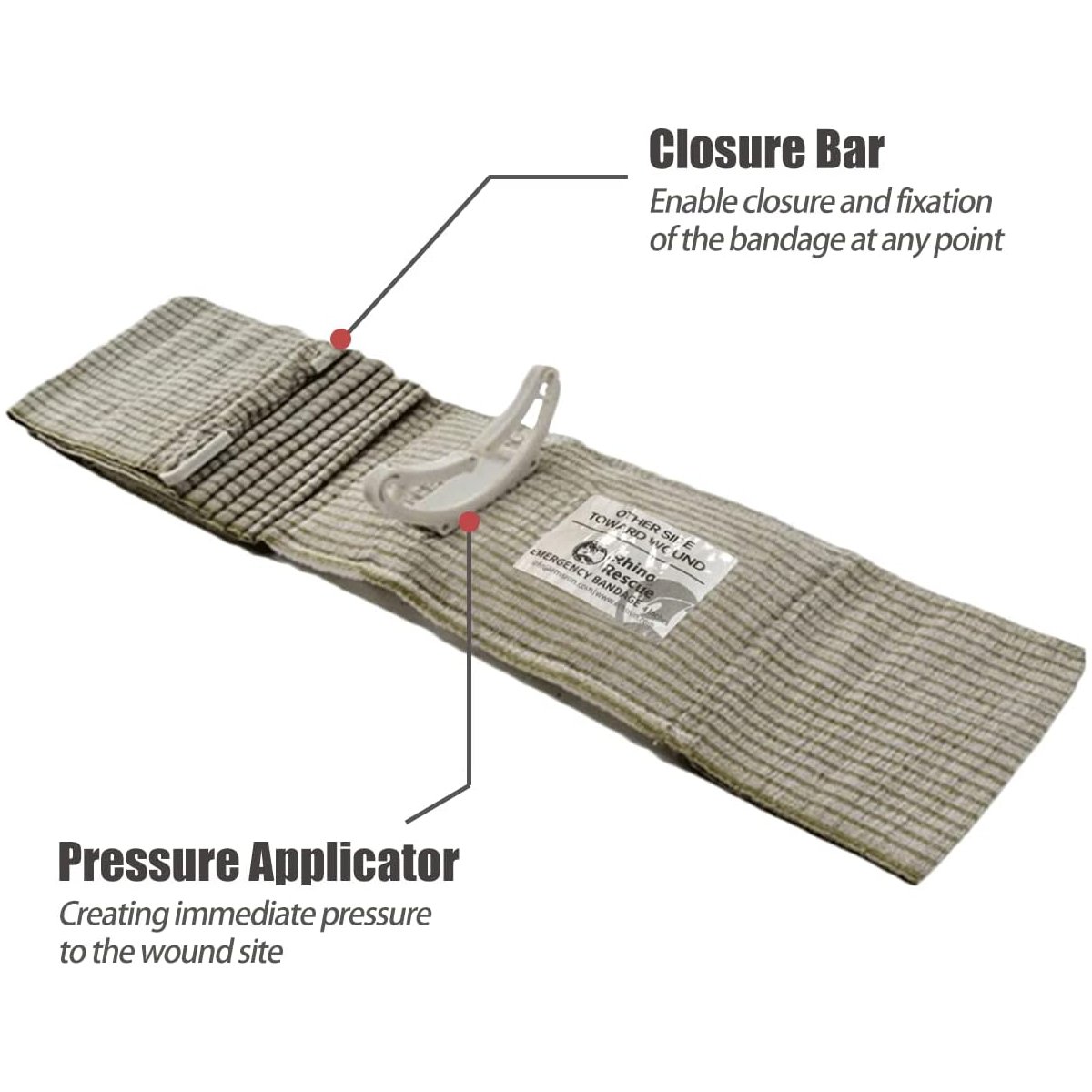 - MEDICAL & MILITARY LEVELThe emergency bandage's sterile, non-adherent pad applies pressure to any site, can be easily wrapped and secured, and has an additional application, similar to a tourniquet, to further constrict blood-flow. This medical supply is widely added in car first aid kit, IFAK trauma kit, tactical pouch, survival bug out bag……